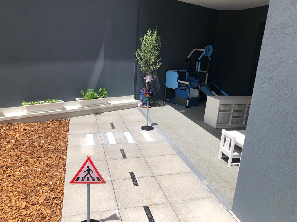 La crèche dispose d’un grand espace intérieur de 158 m2, d’un patio et d’un jardin.